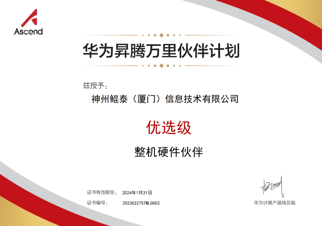 近日,kaiyun开云数码旗下神州继获得华为鲲鹏领先级整机硬件伙伴认证之后,再获华为昇腾优选级整机硬件伙伴认证!这是神州与华为昇腾深化合作的硕果,也代表着kaiyun开云数码信创业务在AI领域获得生态伙伴的充分认可。